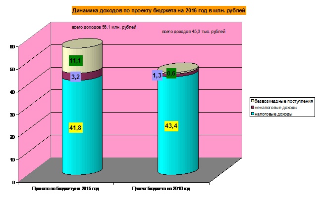 Пунктом 1 проекта решения утверждается общий объем доходов бюджета на 2016 год в сумме 45 278,1 тыс. рублей, в том числе объем межбюджетных трансфертов, получаемых из других бюджетов бюджетной системы Российской Федерации в сумме 592,0 тыс. рублей, общий объем расходов в сумме 45 278,1 тыс. рублей и дефицит бюджета в сумме 0,0 тыс. рублей.